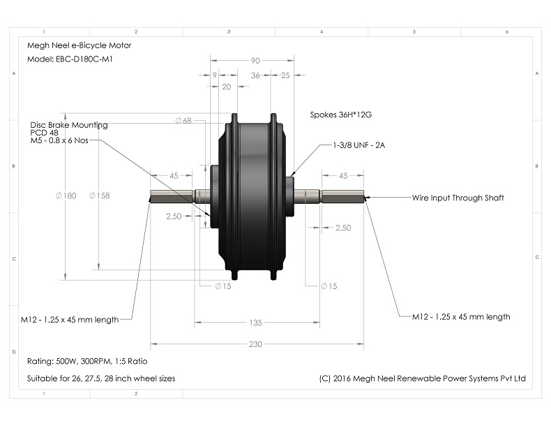 Megh Neel - 250-500W BLDC Bicycle Hub Motor