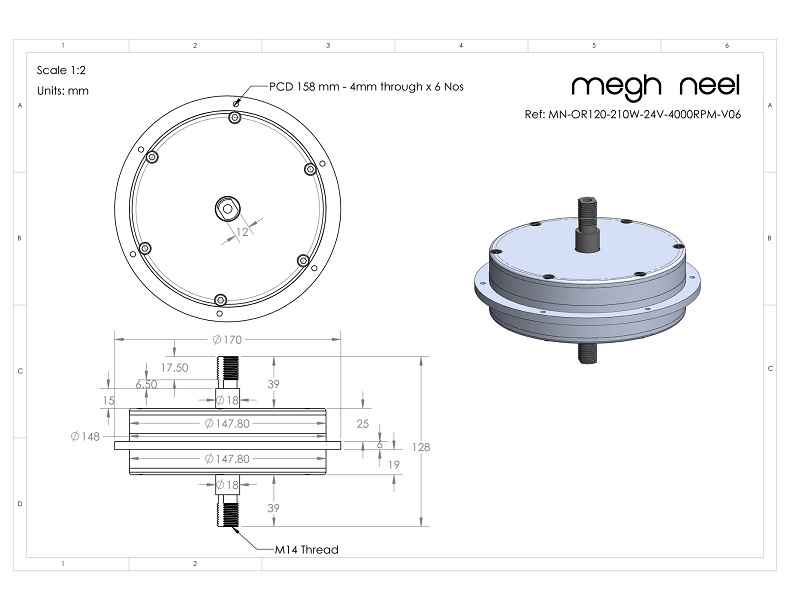 Megh Neel - 210W BLDC Hub Motor, 4000 RPM